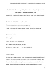 Gee, B., Orchard, F., Clarke, E., Joy, A., Clarke, T. and Reynolds, S. (2019) The effect of non-pharmacological sleep interventions on depression symptoms: a meta-analysis of randomised controlled trials. Sleep Medicine Reviews, 43. pp. 118-128. ISSN 1532-2955 doi: 10.1016/j.smrv.2018.09.004