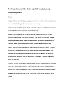 Background: Despite breastfeeding providing maximum health benefits to mother and baby, many women in the United Kingdom do not breastfeed, or do so briefly. Purpose: Using tenets of ethnography, this study aimed to explore the everyday experiences of first time breastfeeding mothers in the early weeks following birth. Methods: Using a camcorder, five mothers in the United Kingdom captured their real-time experiences in a video diary, until they perceived their infant feeding was established. Using a multidimensional approach to analysis, we examined how five mothers interacted with the camcorder as they shared their emotions, feelings, thoughts and actions in real-time. Findings: This paper focuses on one theme, the therapeutic role of the camcorder in qualitative research. Four subthemes are discussed highlighting the therapeutic impact of talking to the camcorder: personifying the camcorder; using the camcorder as a confidante; a sounding board; and a mirror and motivator. Conclusion. Frequent opportunities to relieve tension by talking to “someone” without interruption, judgement or advice can be therapeutic. Further research needs to explore how the video diary method can be integrated into standard postnatal care to provide benefits for a wider population.