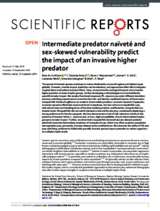 Intermediate predator naïveté and sex-skewed vulnerability predict the impact of an invasive higher predator