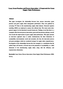 Cherrafi, A., Garza-Reyes, J. A., Kumar, V., Mishra, N., Ghobadian, A. and Elfezazi, S. (2018) Lean, green practices and process innovation: a model for green supply chain performance. International Journal of Production Economics, 206. pp. 79-92. ISSN 0925-5273 doi: 10.1016/j.ijpe.2018.09.031