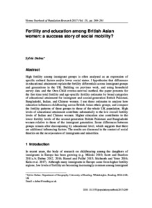 Dubuc, S. (2018) Fertility and education among British Asian women: a success story of social mobility? Vienna Yearbook of Population Research 2017, 15. pp. 269-291. ISSN 1728-5305 doi: 10.1553/populationyearbook2017s269