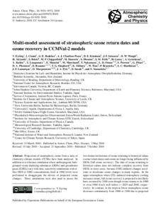 Eyring, V., Cionni, I., Bodeker, G. E., Charlton-Perez, A. J. ORCID: https://orcid.org/0000-0001-8179-6220, Kinnison, D. E., Scinocca, J. F., Waugh, D. W., Akiyoshi, H., Bekki, S., Chipperfield, M. P., Dameris, M., Dhomse, S., Frith, S. M., Garny, H., Gettelman, A., Kubin, A., Langematz, U., Mancini, E., Marchand, M., Nakamura, T., Oman, L. D., Pawson, S., Pitari, G., Plummer, D. A., Rozanov, E., Shepherd, T. G. ORCID: https://orcid.org/0000-0002-6631-9968, Shibata, K., Tian, W., Braesicke, P., Hardiman, S. C., Lamarque, J. F., Morgenstern, O., Pyle, J. A., Smale, D. and Yamashita, Y. (2010) Multi-model assessment of stratospheric ozone return dates and ozone recovery in CCMVal-2 models. Atmospheric Chemistry and Physics, 10 (19). pp. 9451-9472. ISSN 1680-7316 doi: 10.5194/acp-10-9451-2010