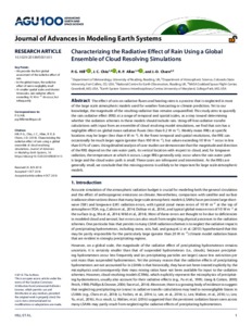 Hill, P. G. ORCID: https://orcid.org/0000-0002-9745-2120, Chiu, J. C., Allan, R. ORCID: https://orcid.org/0000-0003-0264-9447 and Chern, J.-D. (2018) Characterizing the radiative effect of rain using a global ensemble of cloud resolving simulations. Journal of Advances in Modeling Earth Systems, 10 (10). pp. 2453-2470. ISSN 19422466 doi: 10.1029/2018MS001415