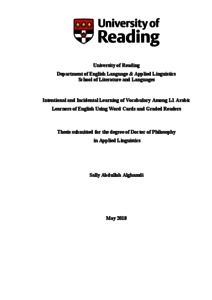 Alghamdi, S. A. (2018) Intentional and incidental learning of vocabulary among L1 Arabic learners of English using word cards and graded readers. PhD thesis, University of Reading. doi: 10.48683/1926.00079709