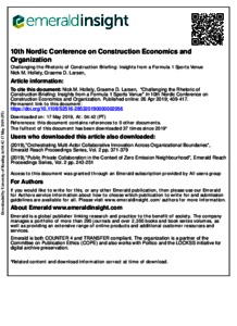 Hollely, N. M. and Larsen, G. D. (2019) Challenging the rhetoric of construction briefing: insights from an Formula 1 sports venue. In: 10th Nordic Conference on Construction Economics and Organization, 7-8 May 2019, Estonia, pp. 409-417.