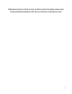 Despite their unprecedented growth, developing countries still face severe problems in the provision of collective goods. Electricity, whose provision is scarce or unreliable in most developing regions, especially in Sub-Saharan Africa, is an emblematic case. The reason for this shortage is not only imputable to the lack of effective formal institutions, but also to the inefficacy of informal institutions in enabling alternative solutions for the production, transmission and distribution of electricity. We claim that in this context of “double institutional void”, foreign direct investment (FDI) and multinational enterprises (MNEs) can play a decisive role. However, their effectiveness depends on both the formal and informal institutional proximity between the home and the host countries. Our empirical analysis relies on panel data models run on a sample of pairs of home-host countries, the latter of which are all from Sub-Saharan Africa (SSA), observed from 2005 to 2011.