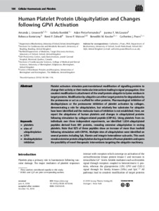 Unsworth, A. J., Bombik, I., Pinto-Fernandez, A., McGouran, J. F., Konietzny, R., Zahedi, R. P., Watson, S. P., Kessler, B. M. and Pears, C. J. (2019) Human platelet protein ubiquitylation and changes following GPVI activation. Thrombosis and Haemostasis, 119 (1). pp. 104-116. ISSN 0340-6245 doi: 10.1055/s-0038-1676344