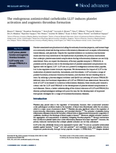 The endogenous antimicrobial cathelicidin LL37 induces platelet activation and augments thrombus formation