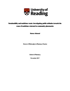 Alhamad, H. (2018) Sustainability and medicines waste: investigating public attitudes towards the reuse of medicines returned to community pharmacies. PhD thesis, University of Reading. doi: 10.48683/1926.00079994