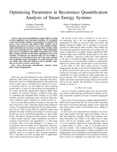 Giasemidis, G. and Vukadinovic Greetham, D. (2018) Optimising parameters in recurrence quantification analysis of smart energy systems. In: 9th International Conference on Information, Intelligence, Systems and Applications (IISA2018), 23-25 July 2015, Zakynthos, Greece.