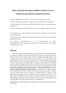 In the current Chinese land administration system, two types of land ownership including state and collective ownership coexist and the industrial land use rights can be transferred between different land lease terms. Previous studies found the significant relationship between land ownerships and lease terms with agriculture land use efficiency, but it is still unclear for the industrial land use efficiency. This study researched the effects of China's dual land ownerships and land lease terms on rural town industrial land use efficiency. Questionnaires of 294 industrial enterprises in Hudai, Qianqiao, and Xibei in Wuxi City, East China, were studied using two multiple linear regression models. The results showed that collective land with incomplete property rights caused land use inefficiency of lower industrial enterprises’ output per hectare of land. The industrial enterprises’ outputs per hectare from collective land were 2.16 million Yuan (0.31 million US dollar) and 2.06 million Yuan (0.30 million US dollar) less than those from state land in these two models, respectively. Different land lease terms negatively correlated with the use efficiency of rural industrial land. The outputs per hectare of industrial enterprises using the long term lease were 1.30 million Yuan (0.19 million US dollar) less than those using the short term lease in model 2. Our results highlight the importance of the integrated urban-rural land system and tailored lease terms of industrial land to increase the utilization efficiency of industrial land.