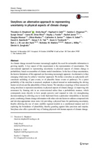 Shepherd, T. G. ORCID: https://orcid.org/0000-0002-6631-9968, Boyd, E., Calel, R. A., Chapman, S. C., Dessai, S., Dima-West, I. M., Fowler, H. J., James, R., Maraun, D., Martius, O., Senior, C. A., Sobel, A. H., Stainforth, D. A., Tett, S. F. B., Trenberth, K. E., van den Hurk, B. J. J. M., Watkins, N. W., Wilby, R. L. and Zenghelis, D. A. (2018) Storylines: an alternative approach to representing uncertainty in physical aspects of climate change. Climatic Change, 151 (3-4). pp. 555-571. ISSN 0165-0009 doi: 10.1007/s10584-018-2317-9