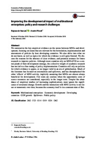 Narula, R. ORCID: https://orcid.org/0000-0002-4266-2681 and Pineli, A. (2019) Improving the development impact of multinational enterprises: policy and research challenges. Economia e Politica Industriale/Journal of Industrial and Business Economics, 46 (1). pp. 1-24. ISSN 0391-2078 doi: 10.1007/s40812-018-0104-2
