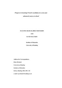 | Uncontrolled Keywords | Vocabulary; progress; French as a second language |