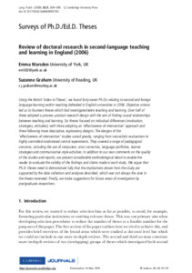 Uncontrolled Keywords Second language; teaching; learning; PhD theses; systematic review