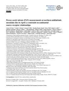 Fiore, A., Fischer, E., Milly, G., Deolal, S. P., Wild, O., Jaffe, D., Staehelin, J., Clifton, O., Bergmann, D., Collins, B. ORCID: https://orcid.org/0000-0002-7419-0850, Doherty, R., Duncan, B., Fischer, B., Gilge, S., Hess, P., Horowitz, L., Lapru, A., MacKenzie, I., Park, R., Ries, L., Sanderson, M., Schultz, M., Shindell, D., Stevenson, D., Szopa, S., Zellweger, C. and Zeng, G. (2018) Peroxy acetyl nitrate (PAN) measurements at northern mid-latitude mountain sites in April: a constraint on continental source-receptor relationships. Atmospheric Chemistry and Physics, 18. pp. 15345-15361. ISSN 1680-7316 doi: 10.5194/acp-18-15345-2018