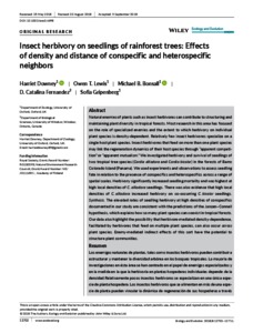Insect herbivory on seedlings of rainforest trees: effects of density and distance of conspecific and heterospecific neighbours.