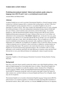 Daller, M. (2019) Predicting international students' clinical and academic grades using two language tests (IELTS and C-test): a correlational research study. Nurse Education Today, 72. pp. 6-11. ISSN 0260-6917 doi: 10.1016/j.nedt.2018.10.007