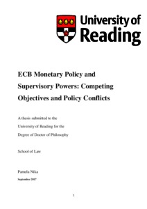 Nika, P. (2018) ECB monetary policy and supervisory powers: competing objectives and policy conflicts. PhD thesis, University of Reading.