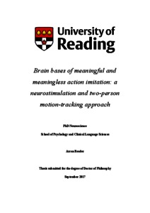 Reader, A. (2018) Brain bases of meaningful and meaningless action imitation: a neurostimulation and two-person motion-tracking approach. PhD thesis, University of Reading.