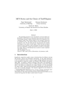 Hashimzade, N., Khodavaisi, H. and Myles, G. D. (2011) MFN status and the choice of tariff regime. Open Economies Review, 22 (5). pp. 847-874. ISSN 1573-708X doi: 10.1007/s11079-010-9178-9