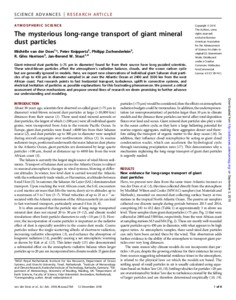 van der Does, M., Knippertz, P., Zschenderlein, P., Harrison, G. ORCID: https://orcid.org/0000-0003-0693-347X and Stuut, J.-B. (2018) The mysterious long-range transport of giant mineral dust particles. Science Advances, 4 (12). eaau2768. ISSN 2375-2548 doi: 10.1126/sciadv.aau2768