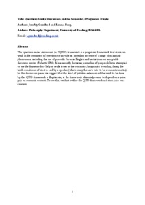 The ‘question under discussion’ (or ‘QUD’) framework is a pragmatic framework that draws on work in the semantics of questions to provide an appealing account of a range of pragmatic phenomena, including the use of prosodic focus in English and restrictions on acceptable discourse moves (Roberts 1996). More recently, however, a number of proposals have attempted to use the framework to help to settle issues at the semantics/pragmatics boundary, fixing the truth-conditions of what is said by a speaker (which many theorists take to be a semantic matter). In this discussion piece, we suggest that this kind of putative extension of the work to be done by the QUD framework is illegitimate, as the framework ultimately seems to depend on a prior grip on semantic content. To see this, we first outline the QUD framework and then raise our concern.