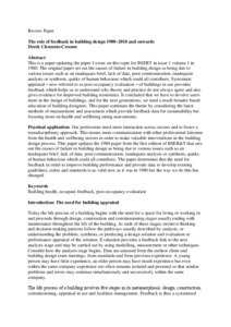 Clements-Croome, D. (2019) The role of feedback in building design 1980–2018 and onwards. Building Services Engineering Research & Technology, 40 (1). pp. 5-12. ISSN 0143-6244 doi: 10.1177/0143624418812982
