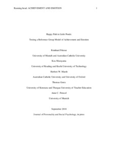 Pekrun, R., Murayama, K., Marsh, H. W., Goetz, T. and Frenzel, A. C. (2019) Happy fish in little ponds: testing a reference group model of achievement and emotion. Journal of Personality and Social Psychology, 117 (1). pp. 166-185. ISSN 1939-1315 doi: 10.1037/pspp0000230