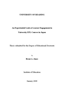 Jones, B. A. (2018) An experiential look at learner engagement in University EFL courses in Japan. EdD thesis, University of Reading.