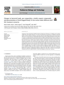 Changes in bacterial loads, gas composition, volatile organic compounds, and glucosinolates of fresh bagged Ready-To-Eat rocket under different shelf life treatment scenarios.
