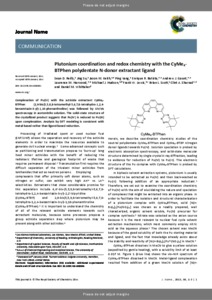 Plutonium coordination and redox chemistry with the CyMe4-BTPhen polydentate N-donor extractant ligand