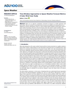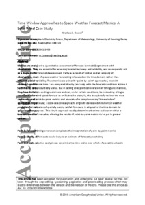 Owens, M. J. ORCID: https://orcid.org/0000-0003-2061-2453 (2018) Time-window approaches to space-weather forecast metrics: a solar wind case study. Space Weather, 16 (11). pp. 1847-1861. ISSN 1542-7390 doi: 10.1029/2018sw002059