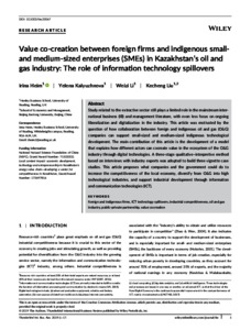Value co‐creation between foreign firms and indigenous small‐ and medium‐sized enterprises (SMEs) in Kazakhstan's oil and gas industry: the role of information technology spillovers