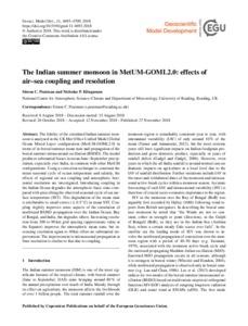 Bombardi, R. J., Schneider, E. K., Marx, L., Halder, S., Singh, B., Tawfik, A. B., Dirmeyer, P. A., and Kinter, J. L.: Improvements in the Representation of the Indian Summer Monsoon in the NCEP Climate Forecast System Version 2, Clim. Dyn., 45, 2485-2498, doi:10.1007/s00382-015-2484-6, 2015. ** Bush, S. J., Turner, A. G., Woolnough, S. J., Martin, G. M., and Klingaman, N. P.: The effect of increased convective entrainment on Asian monsoon biases in the MetUM general circulation model, Q. J. R. Meteorol. Soc., 141, 311-326, doi:10.1002/qj.2371, 2015. ** Dee, D. P., Uppala, S. M., Simmons, A. J., Berrisford, P., Poli, P., Kobayashi, S., Andrae, U., Balmaseda, M. A., Balsamo, G., Bauer, P., Bechtold, P., Beljaars, A. C. M., van de Berg, L., Bidlot, J., Bormann, N., Delsol, C., Dragani, R., Fuentes, M., Geer, A. J., Haimberger, L., Healy, S. B., Hersbach, H., Holm, E. V., Isaksen, L., K\aallberg, P., Kohler, M., Matricardi, M., McNally, A. P., Monge-Sanz, B. M., Morcrette, J.-J., Park, B.-K., Peubey, C., de Rosnay, P., Tavolato, C., Thepaut, J.-N., and Vitart, F.: The ERA-Interim reanalysis: configuration and performance of the data assimilation system, Q. J. R. Meteorol. Soc., 137, 553-597, doi:10.1002/qj.828, 2011. ** DeMott, C. A., Stan, C., Randall, D. A., Kinter, J. L., and Khairoutdinov, M.: The Asian monsoon in the superparameterized CCSM and its relationship to tropical wave activity, J. Clim., 24, 5134-5156, doi:10.1175/2011JCLI4202.1, 2011. ** DeMott, C. A., Stan, C., Randall, D. A., and Branson, M. D.: Intraseasonal variability in coupled GCMs: The roles of ocean feedbacks and model physics, J. Clim., 27, 4970-4995, doi:10.1175/JCLI-D-13-00760.1, 2014. ** DeMott, C. A., Klingaman, N. P., and Woolnough, S. J.: Atmosphere-Ocean Coupled Processes in the Madden-Julian Oscillation, Rev. Geophys., 53, 1099-1154, doi:10.1002/2014RG000478, 2015. ** Duchon, C. E.: Lanczos Filtering in One and Two Dimensions, J. Appl. Meteorol., 18, 1016-1022, doi:10.1175/1520-0450(1979)018<1016:LFIOAT>2.0.CO;2, 1979. ** Fang, Y., Wu, P., Mizielinski, M. S., Roberts, M. J., Wu, T., Li, B., and Vidale, P. L.: High-resolution simulation of the boreal summer intra-seasonal oscillation in Met Office Unified Model, J. Clim., 143, 362-373, doi:10.1002/qj.2927, 2017. ** Fu, X. and Wang, B.: Differences of boreal summer intraseasonal oscillations simulated in an atmosphere-ocean coupled model and an atmosphere-only model, J. Clim., 17, 1263-1271, doi:10.1175/1520-0442(2004)017<1263:DOBSIO>2.0.CO;2, 2004. ** Gadgil, S. and Gadgil, S.: The Indian Monsoon, GDP and Agriculture, Econ. Polit. Wkly., 41, 4887-4895, 2006. ** Goswami, B. B. N., Deshpande, M., Mukhopadhyay, P., Saha, S. K., Rao, S. A., Murthugudde, R., and Goswami, B. B. N.: Simulation of monsoon intraseasonal variability in NCEP CFSv2 and its role on systematic bias, Clim. Dyn., 43, 2725-2745, doi:10.1007/s00382-014-2089-5, 2014. ** Halley, E.: An Historical Account of the Trade Winds, and Monsoons, Observable in the Seas between and Near the Tropicks, with an Attempt to Assign the Phisical Cause of the Said Winds, Philos. Trans. R. Soc. London, 16, 153-168, 1686. ** Hendon, H. H. and Glick, J.: Intraseasonal air-sea interaction in the tropical Indian and Pacific Oceans, J. Clim., 10, 647-661, doi:10.1175/1520-0442(1997)010<0647:IASIIT>2.0.CO;2, 1997. ** Hirons, L. C., Klingaman, N. P., and Woolnough, S. J.: MetUM-GOML1: A Near-Globally Coupled Atmosphere-Ocean-Mixed-Layer Model, Geosci. Model Dev., 8, 363-379, doi:10.5194/gmd-8-363-2015, 2015. ** Huffman, G. J., Adler, R. F., Morrissey, M. M., Bolvin, D. T., Curtis, S., Joyce, R., McGavock, B., and Susskind, J.: Global Precipitation at One-Degree Daily Resolution from Multisatellite Observations, J. Hydrometeorol., 2, 36-50, doi:10.1175/1525-7541(2001)002<0036:GPAODD>2.0.CO;2, 2001. ** Inness, P. M., Slingo, J. M., Guilyardi, E., and Cole, J.: Simulation of the Madden-Julian Oscillation in a Coupled General Circulation Model. Part II: The Role of the Basic State, J. Clim., 16, 365-382, doi:10.1175/1520-0442(2003)016<0365:SOTMJO>2.0.CO;2, 2003. ** Johnson, S. J., Levine, R. C., Turner, A. G., Martin, G. M., Woolnough, S. J., Schiemann, R., Mizielinski, M. S., Roberts, M. J., Vidale, P. L., Demory, M.-E., and Strachan, J.: The Resolution Sensitivity of the South Asian Monsoon and Indo-Pacific in a Global 0.35\degree\xspace AGCM, Clim. Dyn., 46, 807-831, doi:10.1007/s00382-015-2614-1, 2016. ** Kim, D., Sobel, A. H., Maloney, E. D., Frierson, D. M. W., and Kang, I.-S.: A Systematic Relationship between Intraseasonal Variability and Mean State Bias in AGCM Simulations, J. Appl. Meteorol., 24, 5506-5520, doi:10.1175/2011JCLI4177.1, 2011. ** Klingaman, N. P. and Woolnough, S. J.: Using a case-study approach to improve the Madden-Julian oscillation in the Hadley Centre model, Q. J. R. Meteorol. Soc., 140, 2491-2505, doi:10.1002/qj.2314, 2014. ** Klingaman, N. P. and Woolnough, S. J.: The role of air-sea coupling in the simulation of the Madden-Julian oscillation in the Hadley Centre model, Q. J. R. Meteorol. Soc., 140, 2272-2286, doi:10.1002/qj.2295, 2014. ** Klingaman, N. P., Inness, P. M., Weller, H., and Slingo, J. M.: The Importance of High-Frequency Sea Surface Temperature Variability to the Intraseasonal Oscillation of Indian Monsoon Rainfall, J. Clim., 21, 6119-6140, doi:10.1175/2008JCLI2329.1, 2008. ** Klingaman, N. P., Woolnough, S. J., Weller, H., and Slingo, J. M.: The Impact of Finer-Resolution Air-Sea Coupling on the Intraseasonal Oscillation of the Indian Monsoon, J. Clim., 24, 2451-2468, doi:10.1175/2010JCLI3868.1, 2011. ** Large, W. G., McWilliams, J. C., and Doney, S. C.: Oceanic Vertical Mixing: A Review and a Model with a Nonlocal Boundary Layer Parameterization, Rev. Geophys., 32, 363-403, 1994. ** Lau, K.-M. and Chan, P. H.: Aspects of the 40-50 Day Oscillation during the Northern Summer as Inferred from Outgoing Longwave Radiation, Mon. Weather Rev., 114, 1354-1367, doi:10.1175/1520-0493(198