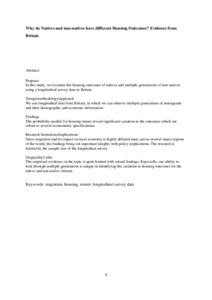 Purpose: In this study, we examine the housing outcomes of natives and multiple generations of non-natives using a longitudinal survey data in Britain. Design/methodology/approach We use longitudinal data from Britain, in which we can observe multiple generations of immigrants and their demographic and economic information. Findings The probability models for housing tenure reveal significant variation in the outcomes which are robust to several econometric specifications. Research limitations/implications Since migration and its impact on local economy is highly debated topic across several major regions of the world, the findings bring out important insights with policy implications. The research is limited by the sample size of the longitudinal survey. Originality/value The empirical evidence on the topic is quite limited with mixed findings. Especially, our ability to look through multiple generations is unique in identifying the variation in housing outcomes for the native and non-native citizens.