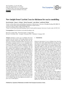 Schröder, D. ORCID: https://orcid.org/0000-0003-2351-4306, Feltham, D. L. ORCID: https://orcid.org/0000-0003-2289-014X, Tsamados, M., Ridout, A. and Tilling, R. (2019) New insight from CryoSat-2 sea ice thickness for sea ice modelling. The Cryosphere, 13. pp. 125-139. ISSN 1994-0424 doi: 10.5194/tc-13-125-2019