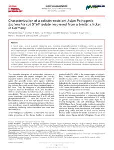 Characterization of a colistin-resistant Avian Pathogenic Escherichia coli ST69 isolate recovered from a broiler chicken in Germany