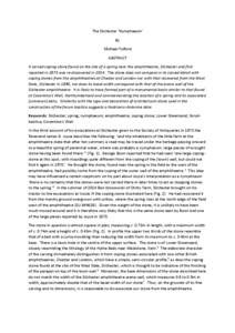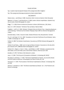 A carved coping stone found on the site of a spring near the amphitheatre, Silchester and first reported in 1873 was re-discovered in 2014. The stone does not compare in its carved detail with coping stones from the amphitheatres at Chester and London nor with that recovered from the West Gate, Silchester in 1890, nor does its basal width correspond with that of the arena wall of the Silchester amphitheatre. It is likely to have formed part of a monumental basin similar to that found at Coventina’s Well, Northumberland and commemorating the location of a spring and its associated (unknown) deity. Similarity with the type and decoration of architectural stone used in the construction of the forum basilica suggests a Hadrianic-Antonine date.