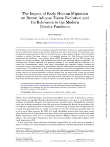 Sellayah, D. (2019) The impact of early human migration on brown adipose tissue evolution and its relevance to the modern obesity pandemic. Journal of the Endocrine Society, 3 (2). pp. 372-386. ISSN 2472-1972 doi: 10.1210/js.2018-00363