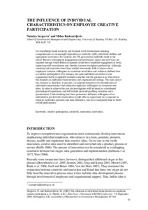 In a knowledge-based economy and dynamic work environment retaining competitiveness is increasingly dependent on creativity, skills, individual abilities and appropriate motivation. For instance, the UK government explicitly stated in the recent "Review of Employee Engagement and Investment" report that new ways are required through which British companies could boost employee engagement at work, improving staff commitment and, thereby, increase workplace productivity. Although creativity and innovation have been studied extensively, little is known about employees' intrinsic willingness to contribute novel ideas and solutions (defined here as creative participation). For instance, the same individual can thrive in one organisation but be completely isolated in another and the question is to what extent this depends on individual characteristics and organisational settings. The main aim of this research is, therefore, to provide a conceptual framework for identification of individual characteristics that influence employees' willingness to contribute new ideas. In order to achieve this aim the investigation will be based on a developed psychological experiment, and will include personal-profiling inventory and a questionnaire. Understanding how these parameters influence willingness of an individual to put forward created ideas would offer an opportunity for companies to improve motivation practices and team efficiency, and can consequently lead to better overall performance.
