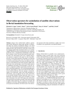 Cooper, E. S., Dance, S. L. ORCID: https://orcid.org/0000-0003-1690-3338, Garcia-Pintado, J., Nichols, N. K. ORCID: https://orcid.org/0000-0003-1133-5220 and Smith, P. ORCID: https://orcid.org/0000-0003-4570-4127 (2019) Observation operators for assimilation of satellite observations in fluvial inundation forecasting. Hydrology and Earth System Sciences, 23. pp. 2541-2559. ISSN 1027-5606 doi: 10.5194/hess-23-2541-2019