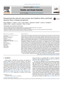 Bellprat, O., Lott, F. C., Gulizia, C., Parker, H. R., Pampuch, L. A., Pinto, I., Ciavarella, A. and Stott, P. A. (2015) Unusual past dry and wet rainy seasons over Southern Africa and South America from a climate perspective. Weather and Climate Extremes, 9. pp. 36-46. ISSN 22120947 doi: 10.1016/j.wace.2015.07.001