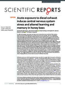 Acute exposure to diesel exhaust induces central nervous system stress and altered learning and memory in honey bees.