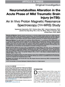 Veeramuthu, V., Seow, P., Narayanan, V., Wong, J. H. D., Tan, L. K., Hernowo, A. T. and Ramli, N. (2018) Neurometabolites alteration in the acute phase of mild traumatic brain injury (mTBI): an in vivo proton magnetic resonance spectroscopy (1H-MRS) study. Academic Radiology, 25 (9). pp. 1167-1177. ISSN 1076-6332 doi: 10.1016/j.acra.2018.01.005