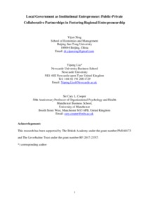 Xing, Y., Liu, Y. and Cooper, C. L. (2018) Local government as institutional entrepreneur: public-private collaborative partnerships in fostering regional entrepreneurship. British Journal of Management, 29 (4). pp. 670-690. ISSN 1467-8551 doi: 10.1111/1467-8551.12282