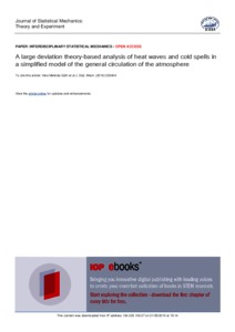 Galfi, V. M., Lucarini, V. ORCID: https://orcid.org/0000-0001-9392-1471 and Wouters, J. ORCID: https://orcid.org/0000-0001-5418-7657 (2019) A large deviation theory-based analysis of heat waves and cold spells in a simplified model of the general circulation of the atmosphere. Journal of Statistical Mechanics: Theory and Experiment. 033404. ISSN 1742-5468 doi: 10.1088/1742-5468/ab02e8