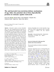 The anti-bacterial iron-restriction defence mechanisms of egg white; the potential role of three lipocalin-like proteins in resistance against Salmonella.