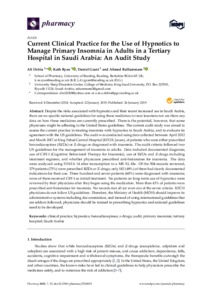 Dobia, A., Ryan, K., Grant, D. and BaHammam, A. (2019) Current clinical practice for the use of hypnotics to manage primary insomnia in adults in a tertiary hospital in Saudi Arabia: an audit study. Pharmacy, 7 (1). 15. ISSN 2226-4787 doi: 10.3390/pharmacy7010015