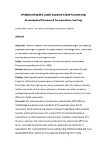 Objectives: There is a need for a more comprehensive understanding of how coaching processes psychologically operate. This paper presents the findings from a study aimed to characterise the coaching process experience and to identify how specific experiences contribute to coaching outcomes. Design: A qualitative design was adopted. Data was analysed by Interpretative Phenomenological Analysis (Smith, 2008). Method: Data was collected from 10 participants, this included coaches (N = 4), coachees (N = 5) and one commissioner, three times along the coaching process. A total of 30 interviews were undertaken. Findings: Coaching outcomes can be generated by three essential mechanisms: Projection of Future Self; Perspectivation of Present Self; and Confirmation of Past/Present Self. Each mechanism’s name represents a particular effect on coachee’s self and may evolve diverse coaching behaviours. Although they all can be actively managed to generate sustainability of outcomes, each mechanism tends to contribute differently to that sustainability. Conclusion: The study provides a comprehensive understanding of the different methodological and experiential ingredients of the coaching process and its implications. While most coaching research is focused on identifying coaching results based on a retrospective analysis, this is one of the first studies accompanying longitudinally the coaching process and capturing an integrative understanding of its dynamics. Moreover, the study provides evidence of how coaching can differently deliver sustainable outcomes and be used as a valuable developmental tool in organisations. The study contributes to our understanding of theory building and raises questions for further research on the uniqueness of coaching interventions.